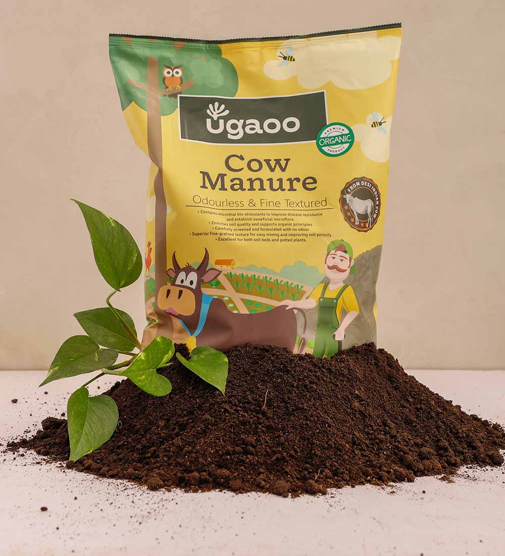 Ugaoo Cow Manure is an excellent fertilizer highly rich with organic matter and helps to improve aeration and break up compact soils. It is developed from composted cow dung of the Indian Desi cow and is incredibly rich with beneficial bacteria that convert soil nutrients into readily available forms for the tender plant.